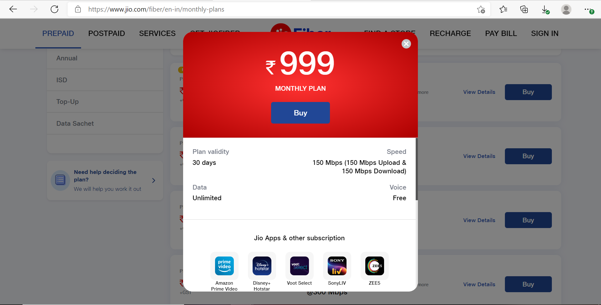 - اتصال Jio Fiber خود را با طرح 999 روپیه یا بالاتر شارژ کنید