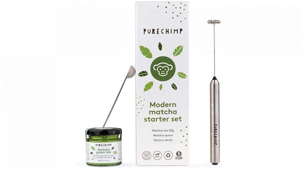 There are plenty of flavoured and premium options on this list, but those looking for a reliable, straightforward matcha will be most interested in this offering from Marukyu Koyamaen. This historical tea purveyor has been growing, procuring and blending tea in the famed Uji region of Japan since 1704 and has long been associated with quality and dependability.This stone-ground matcha comes in an aesthetically pleasing tin and brews a cup of tea with an intense, yet delicate, flavour which should appeal to matcha lovers and newcomers alike. Available at a reasonable price for its quality, this is the best option for those seeking a full-bodied matcha for daily enjoyment.Key details – Size: 40g; Form: Loose powderBuy now from Japan Centre2. PureChimp Matcha Whisk Set: Best matcha for lattesPrice: £22 | Buy now from Amazon