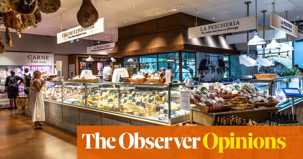 When the first British outpost of the Italian megastore, Eataly, opened its doors a year ago I was predictably sceptical, and not only because the timing was so inauspicious (lockdown had only recently ended and all the offices near its vast emporium in the City of London were still mostly empty). What, I wondered, could it possibly sell that shoppers couldn’t get more conveniently, and more cheaply, elsewhere? But then my friend Tom produced a triumphant supper with some sausages he’d found there, and my resistance began to crumble. Maybe I was missing out. Maybe the answer to all my tinned tomato dreams was to be found in this culinary theme park, which sells 6,000 different Italian goods, and comes with six restaurants and one of the capital’s less charming terraces. (Now things are back to normal, your Aperol spritz will vibrate to the constant rumble of red buses.)So, one recent lunchtime, I paid it a call. On the day in question, I expected it to be busy: in the spring sunshine, the pavements outside were thronged with people in unlikely sunglasses and too-tight shirts ferrying sandwiches from shop to desk. But inside, all was strangely quiet. Passing the meat counter, a butcher flashed me a smile of such piercing hopefulness, it was almost heartbreaking: a scene that may have come straight out of early Fellini were it not for, you know, the escalators, the lighting and the incredible, almost shameful, abundance. When my hand hovered for far too long on the door of a refrigerator that contained every possible kind of mozzarella, I knew I was perfectly safe in my indecision. No one was going to elbow me out of the way, for the simple reason that elbows, unlike products made with buffalo milk, were distinctly thin on the ground. Was this typical? I don’t know. All I can tell you is that according to Eataly, which opened its first branch in Turin in 2007 and now has stores in cities including New York, Tokyo, Paris and São Paulo, more than three million “visitors” have been through its London doors so far, to whom it has sold some 95,000 pieces of focaccia and 30,000 balls of its in-house burrata.Maybe the answer to all my tinned tomato dreams was to be found in this culinary theme parkWandering around, I felt as I often do in duty free shops. I did not need anything, and I was wary of the cost of everything, but I was also restless, suddenly itchy-fingered for a jar of walnut sauce or a box of Sardinian crackers. What made this even worse – my self-loathing was rising like a panettone – was the fact that certain corners of Eataly are practically beyond satire. The section devoted to fruit and veg, for instance, is the province of Natoora, purveyors of “radically seasonal” produce to the loaded middle classes, and it is utterly ridiculous. Not only are the vegetables – pristine yellow carrots, exquisitely sculptural artichokes and long, thin courgettes that bend at the end like treble clefs – arranged in tiny, forbidding groups, as if they’re priceless jewels, you can also buy little plastic tubs of Natoora turmeric hummus and watercress tzatziki, neither of which seem very Puglia-in-high-summer to me (though I suppose the sole kohlrabi on display was, by dint of its very loneliness, a new twist on cucina povera).Tom, who works in advertising, had spoken convincingly to me of Eataly as Italian “soft power”, a concept I vowed to nick for this column. But as I picked up – and then put down – a truffle salami, I realised this didn’t wash with me. At Eataly, there are no churches, no mopeds, no Titians, no people standing up to drink their espressos, and, above all, nothing that seems as though it might have been made at home that very morning by someone with strong hands and a family recipe that has never been written down. This is Italy shrinkwrapped rather than fully fresh, and the shrinkwrapped version is, I believe, already available in supermarkets. Then again, when it comes to food of any kind, I’m also appallingly weak-willed. In the end, I went home with a tub of nubbly fresh pasta, a string bag of blood oranges, a little box of violet-flavoured liquorice – and the powerfully uncomfortable feeling that, when it comes to food, Britain has never, in my lifetime, been more painfully divided, nor more utterly insane.