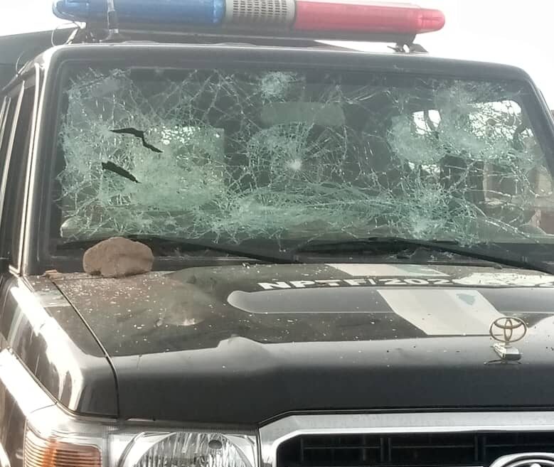 A patrol vehicle belonging to the Lafenwa Police Division was allegedly destroyed during the attack.
