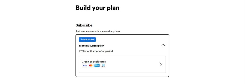 4. Next, you’ll be asked to fill in your card details under the Build your plan section.