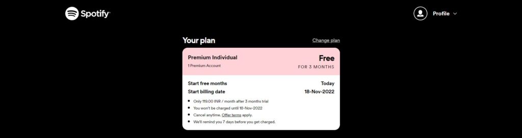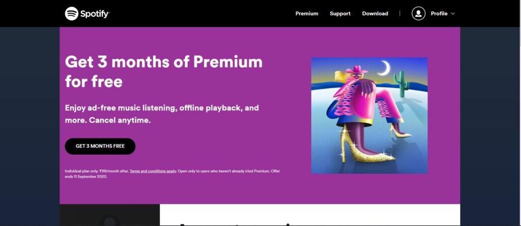 Spotify is offering three months of free premium membership to new users. Those interested – who never subscribed to Premium before – can avail this offer by choosing either the Student plan or an Individual plan that offers three months of free premium membership. Family and Duo members can get a one-month free trial of Spotify Premium. This offer is valid till September 11th, as mentioned in a Spotify blog post.Once this free three months Spotify Premium period ends, you’ll have to pay Rs 119 for a monthly subscription every month, but you can cancel the plan anytime in between this free period, and you won’t have to pay the fees. Here’s how you can get free 3 months of Spotify Premium.How to get free 3 months of Spotify PremiumYou’ll have to log into your Spotify account on the Web to get this free 3 months of Spotify Premium offer. You can’t subscribe to Spotify Premium via a mobile app.